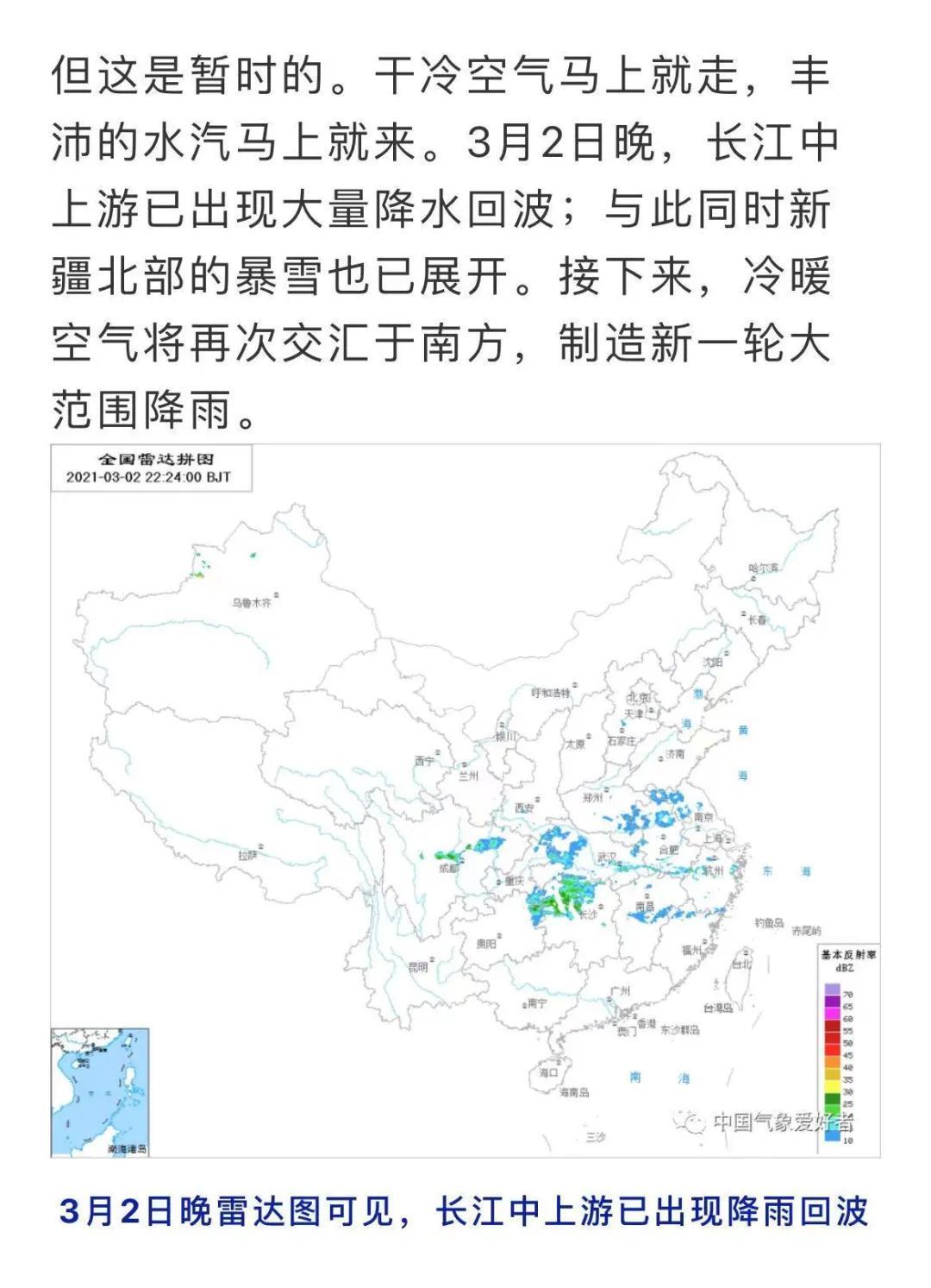 温馨提示:近期虽有冷空气降临,但干冷空气马上就走,新的冷暖空气将再次交汇于南方,制造一轮新的大范围降雨。