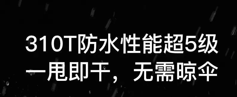 310T 防水性能超 5 级,一甩即干,无需晾晒