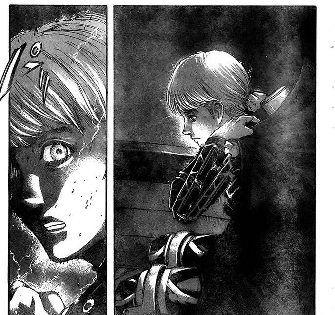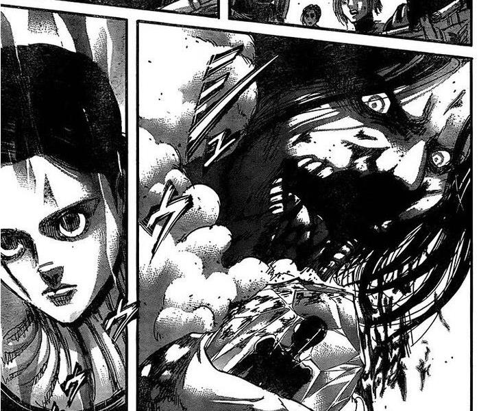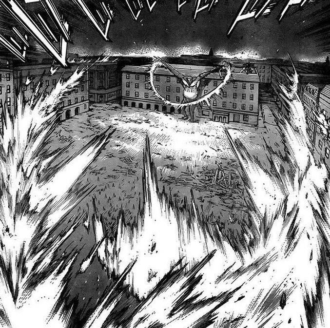 而艾尔敏的登场也确实是脱离了一贯的作风,一上来就巨人化,并且做了个大爆炸,连艾伦和吉克的远距离位置都能看到。