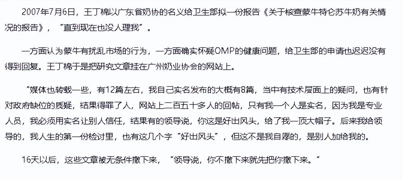 每一起事件背后都是对老百姓健康的漠视,说好的“中国人不骗中国人”去哪了?而每一次危机蒙牛都是悄然度过,不仅没啥影响,反而越做越大,细思极恐,难怪有人不敢出声,害怕报复,连中国奶业协会王丁棉的报告都能被和谐,更何况我们这些普通老百姓。