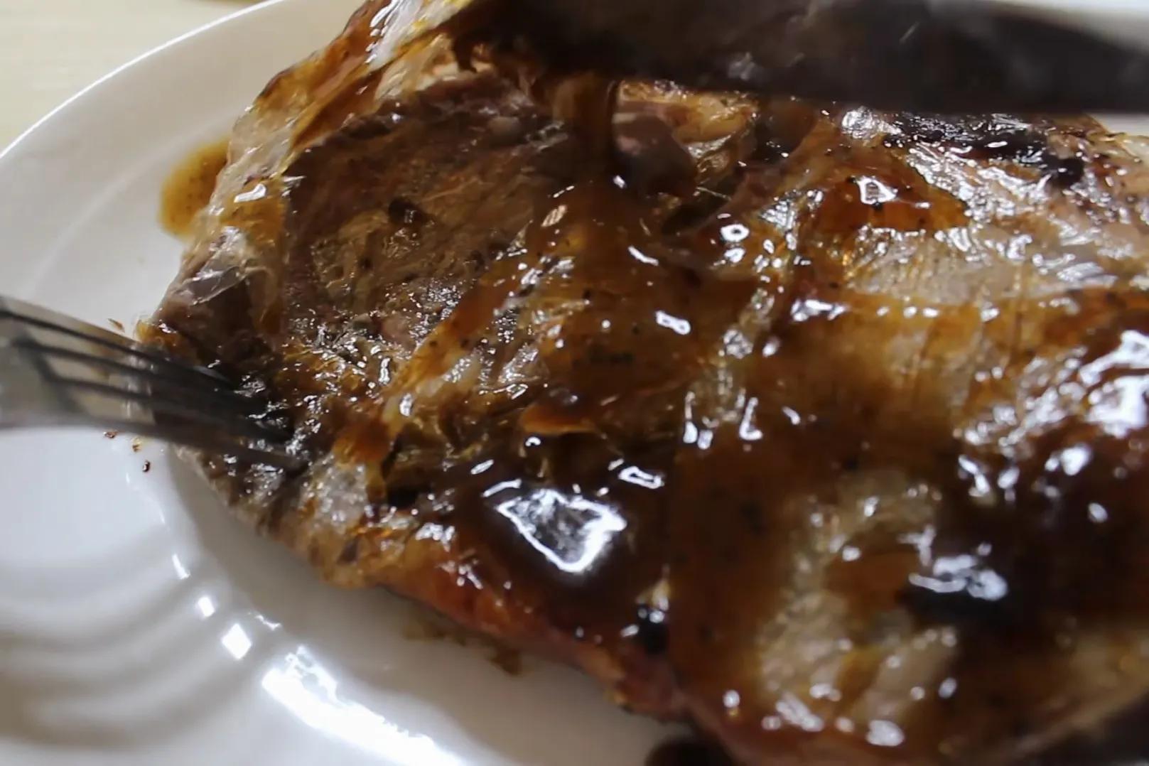 小翔哥未撕塑料袋的战斧牛排