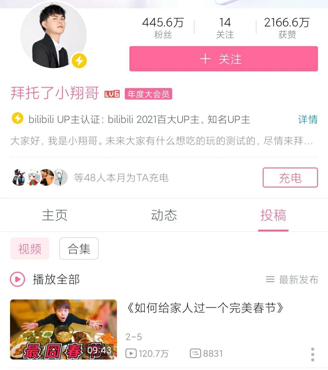当然任何困难都打不倒我们坚强的小翔哥,他马上开设了新号,名为“拜托了,小翔哥”,目前该帐号B站粉丝已经超过440万。在这里,也是祝福小翔哥继续取得成功。