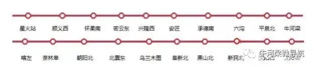 途经朝阳、牛河梁、顺义、昌平、怀柔、密云六个区,将设立星火站、顺义西站、怀柔南站、密云站四个车站。