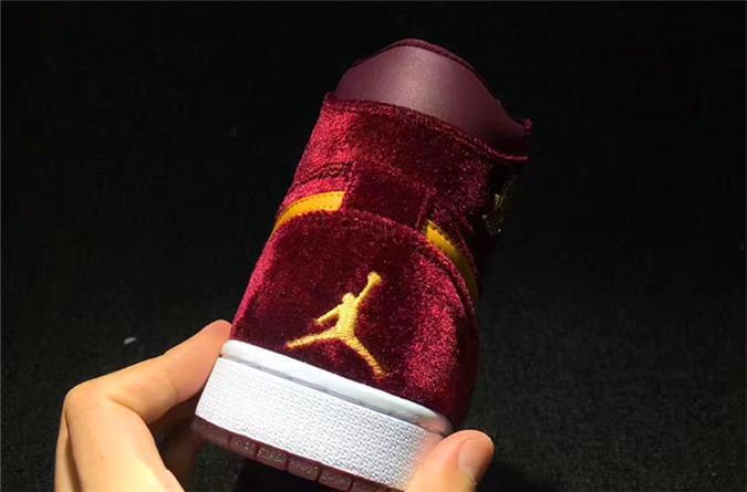 这个配色采用细绒鞋面,红色细绒配上黄色大勾,AJ系列特有的翅膀LOGO采用金色材质,鞋跟处飞人标志采用金色刺绣,整体细致奢华,富有尊贵气息。