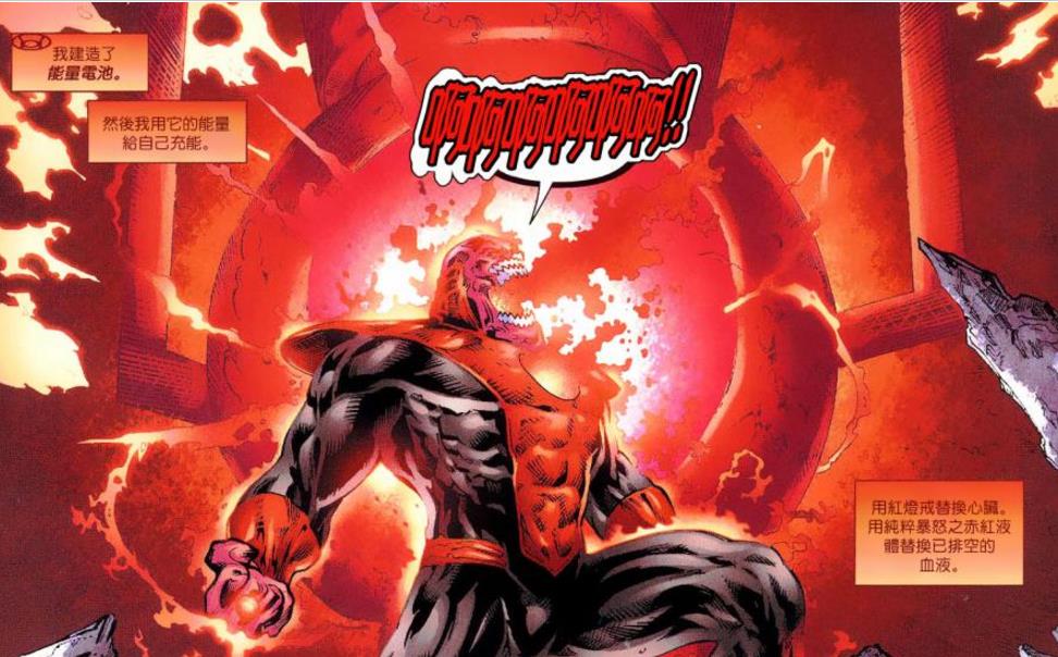 红灯魔建立了能量电池,用红灯戒代替心脏,用纯粹的暴怒的鲜红液体代替了血液。