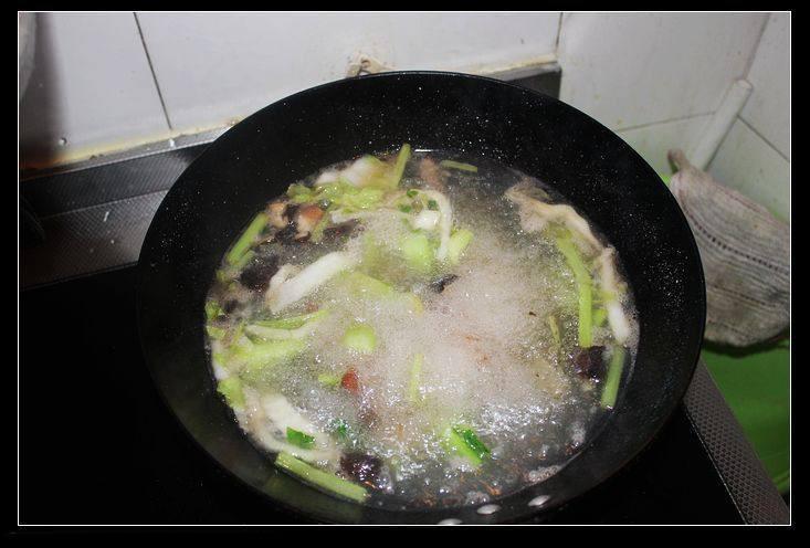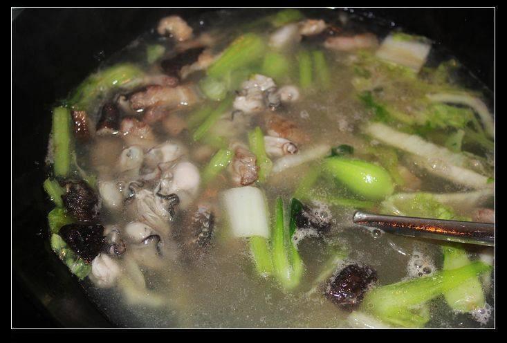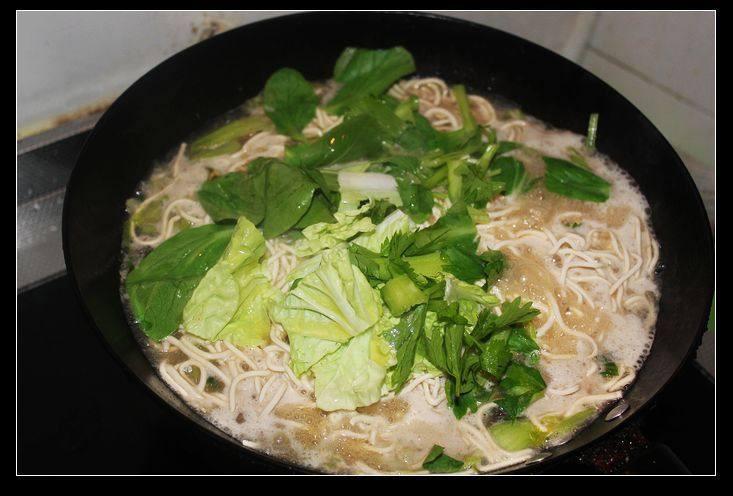 8、最后放青菜叶煮到汤汁浓稠即可。