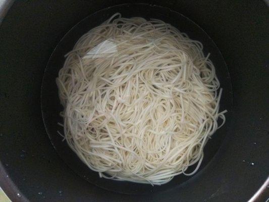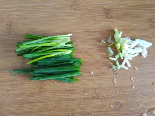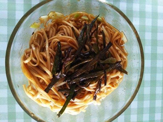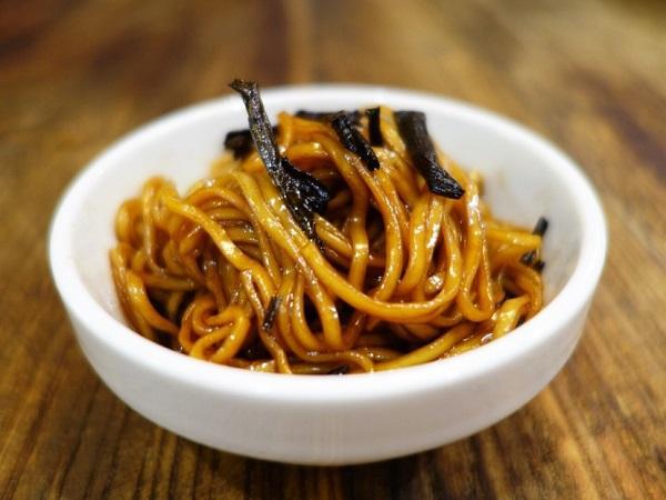 7.面条煮熟放入之前调好的调料中再淋上葱油。