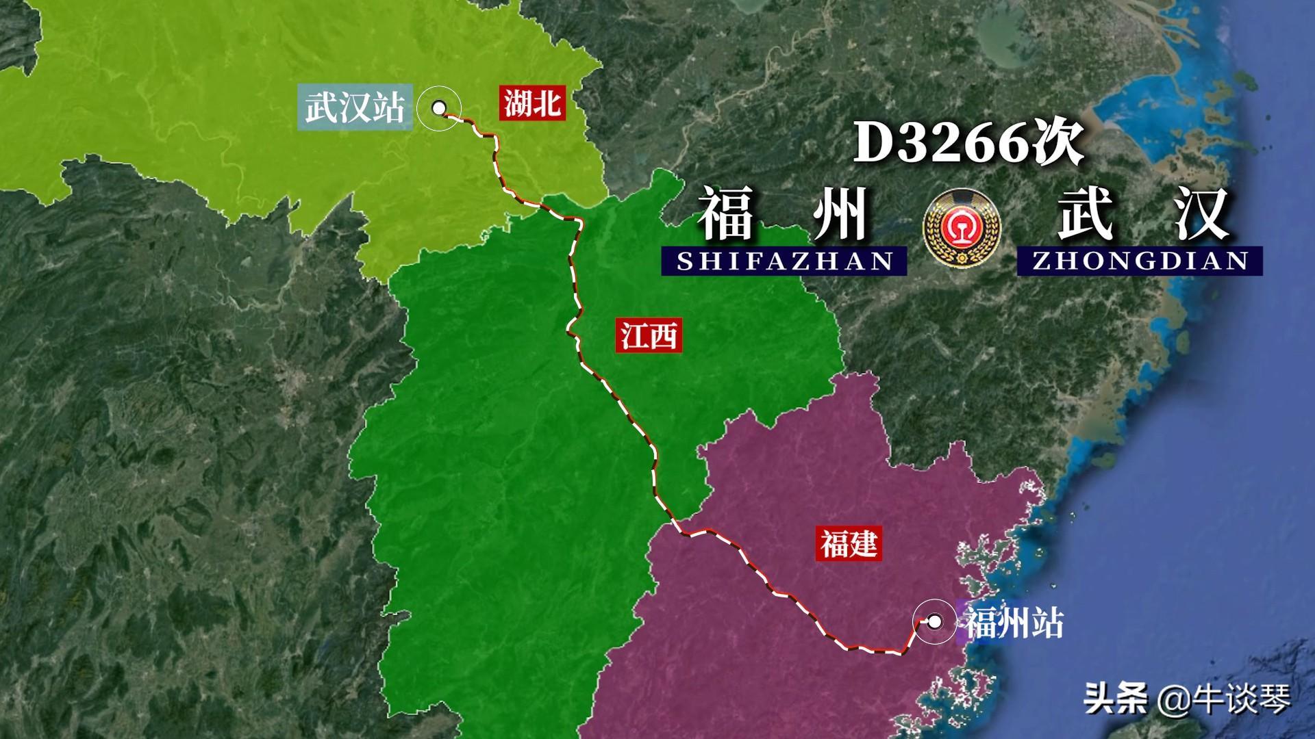 D3266次列车运行线路图:福建福州开往湖北武汉,全程880公里