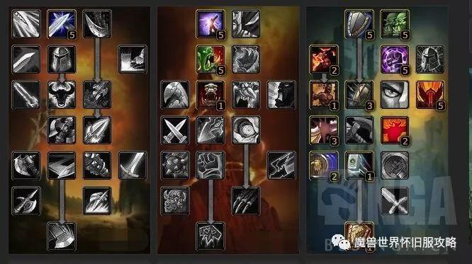 最传统的武器战,减免怒气消耗/增加怒气的天赋基本不去点,因为战士PVP大部分情况下,缺的不是怒气(打带盾职业除外),而是摸到敌人的机会...