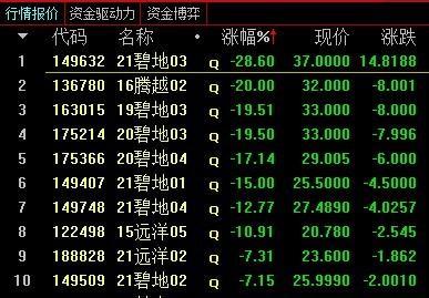 8月8日,碧桂园再度上演股债双杀!碧桂园地产相关债券大跌,如“21碧地03”跌超28%、“21碧地04”跌超20%、“16腾越02”跌20%,均盘中临停;“19碧地03”跌超19%,“20碧地03”跌超17%,“20碧地04”跌超14%,“21碧地01”跌超13%。