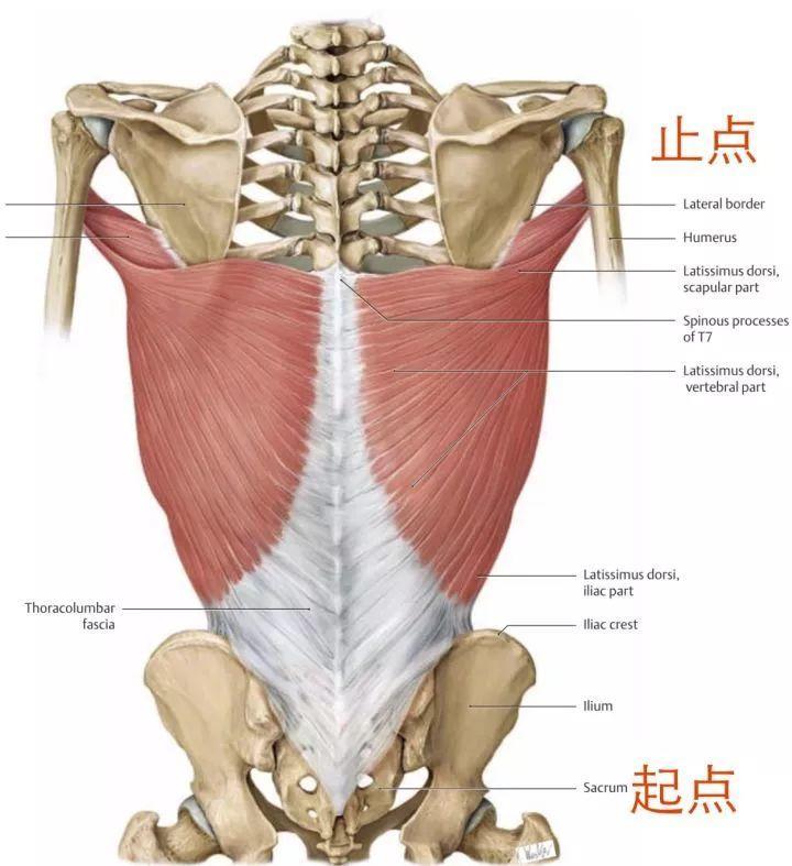 当我们的大腿摆在前面的时候,骨盆也会往前卷(屈曲),这个时候背阔肌的下面是被完全拉长的。这个时候做的引体向上才是这块背阔肌的完整收缩
