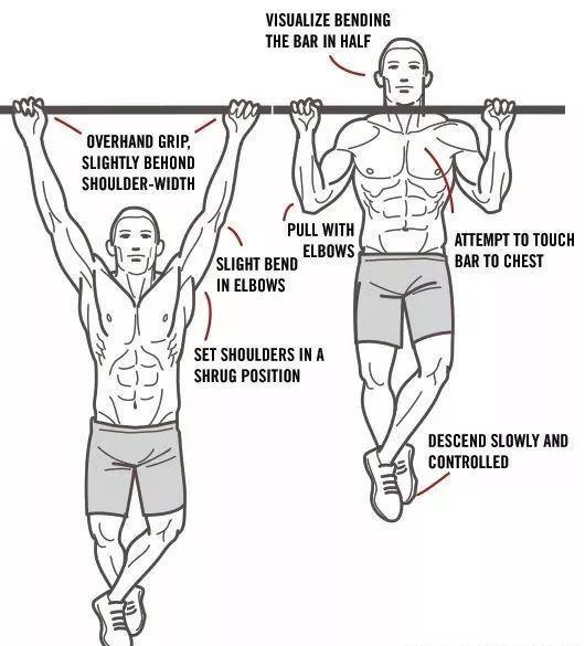 5、动作一定要全,上到至少下巴超过杆子,下放到手臂完全伸直,肩膀放松;