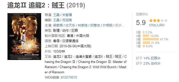 但至《追龙2》上映以来,差评如潮,看来这次真的要沦为烂片了,截至目前,《追龙2》在豆瓣的评分已跌至6分以下。真的令人唏嘘