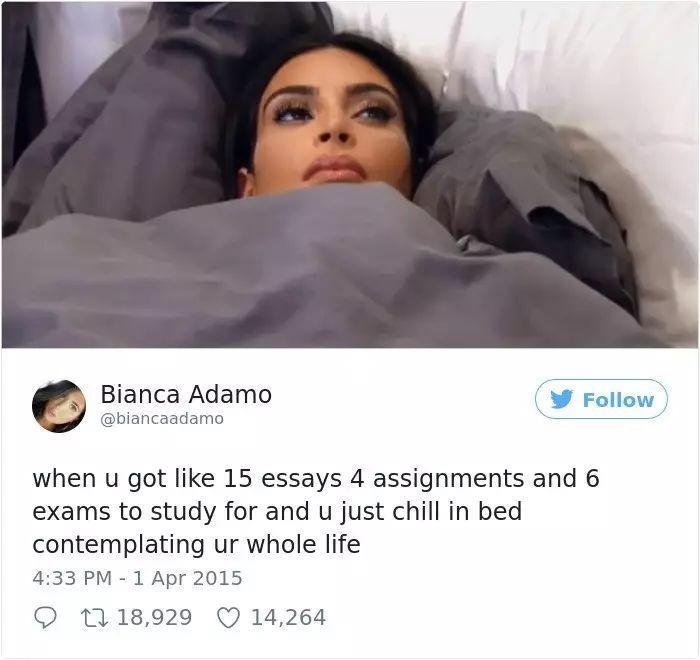 有15篇论文,4个作业,6场考试在等着你的时候,你躺在床上望着天花板,彻底放空……