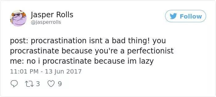 我:不,我拖延因为我懒……