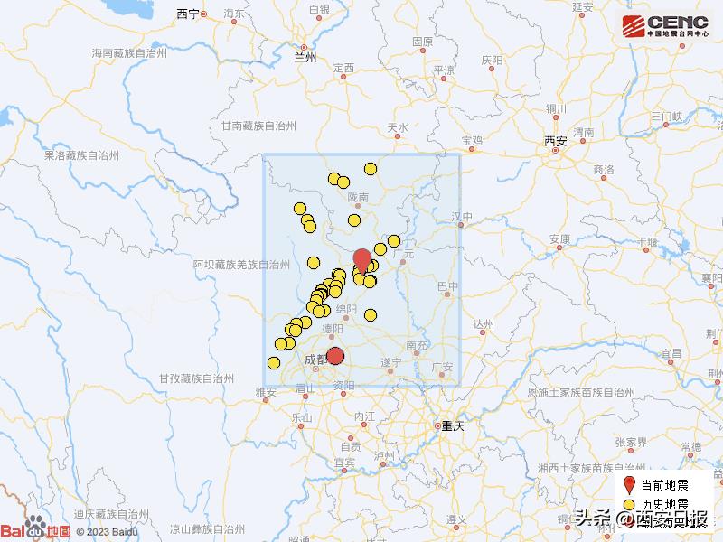 历史地震:根据中国地震台网速报目录,震中周边200公里内近5年来发生3级以上地震共67次,最大地震是2020年2月3日在四川成都市青白江区发生的5.1级地震(距离本次震中181公里),按震级大小前50次历史地震分布如图。