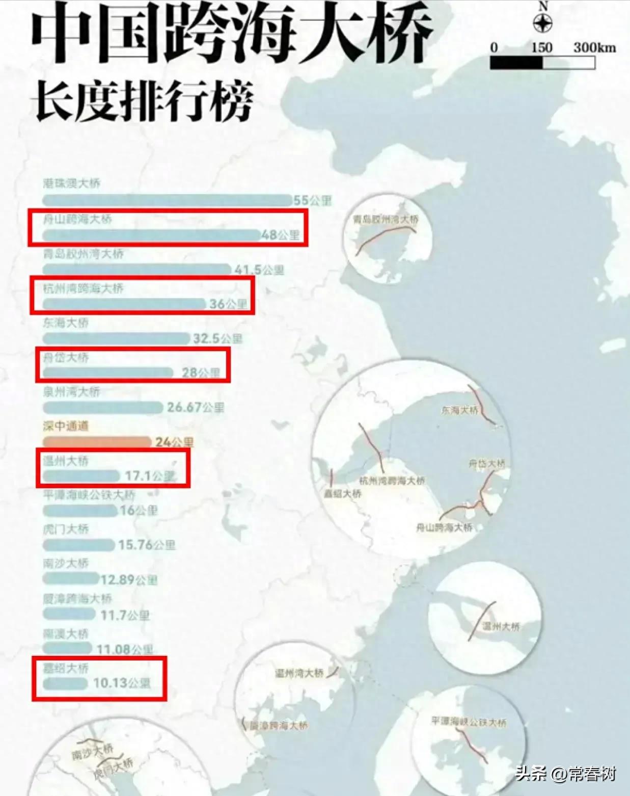 中国十大跨海大桥:港珠澳大桥第一,舟山跨海大桥48公里