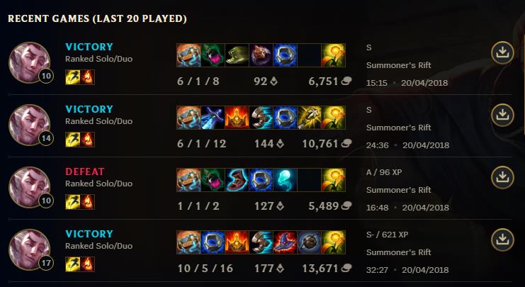 一位Perkz粉丝受到启发后也开始玩中单洛,并贴出了战绩和伤害图:
