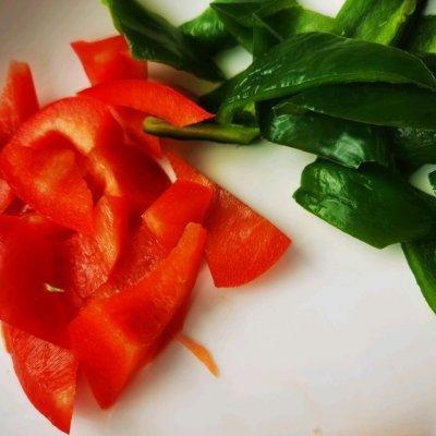 葱花 少许长山药 200g木耳 8小朵青椒 半个红椒 半个姜末 少许