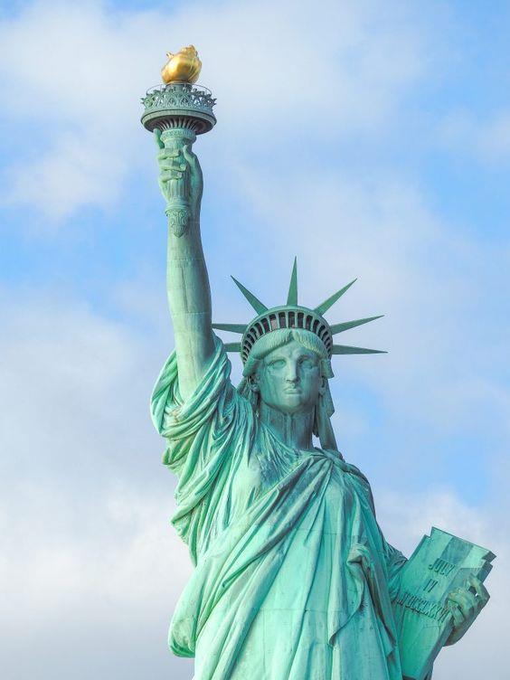 自由女神像(美国):位于美国纽约市港口的自由岛上的自由女神像,是法国在1876年赠送给美国独立100周年的礼物,是美国的象征。