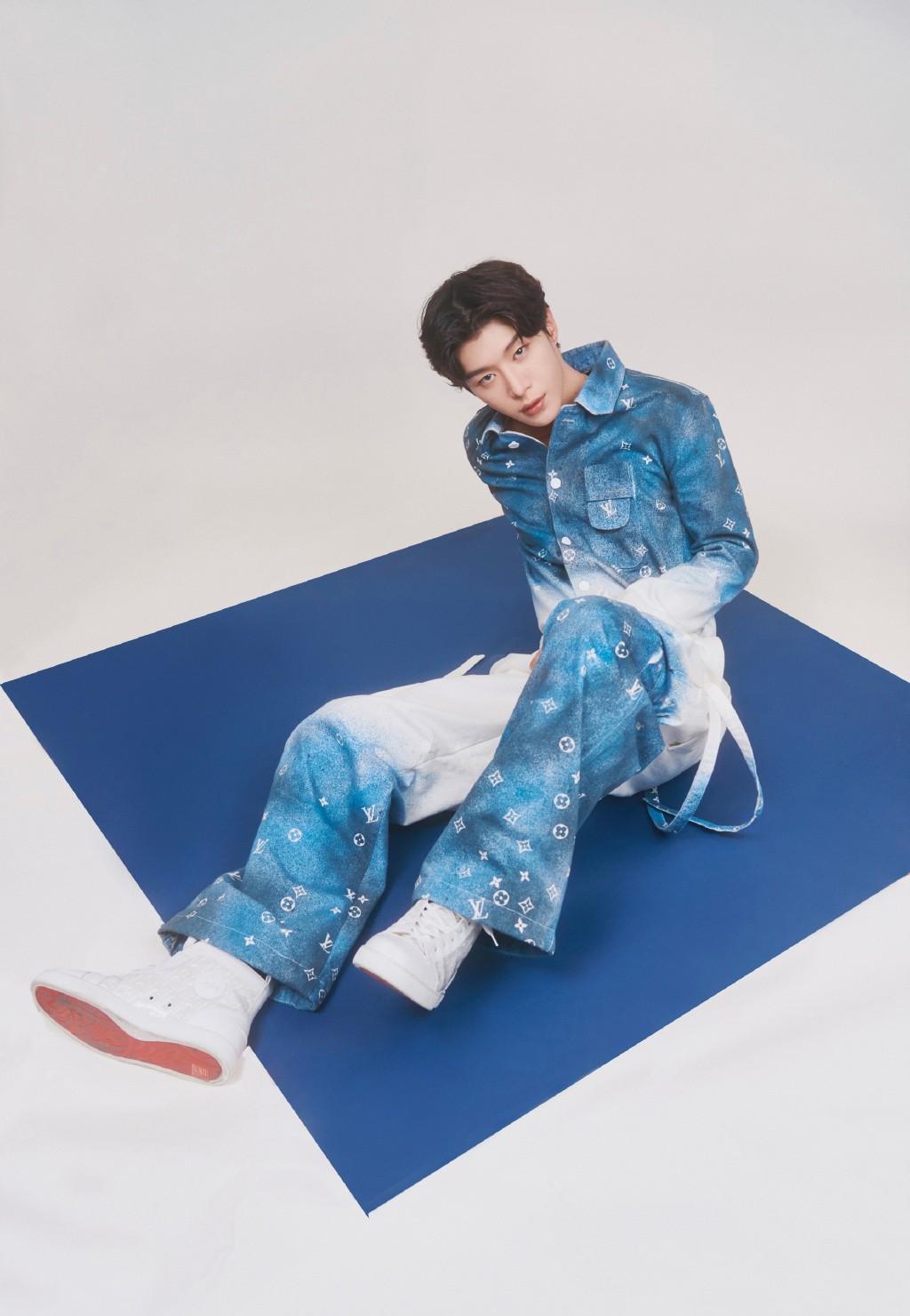 这张照片范丞丞身穿渐变色的连体裤,这样的设计和颜色看起来还是非常清新的,视觉上感觉非常清爽,非常帅气,让人眼前一亮。