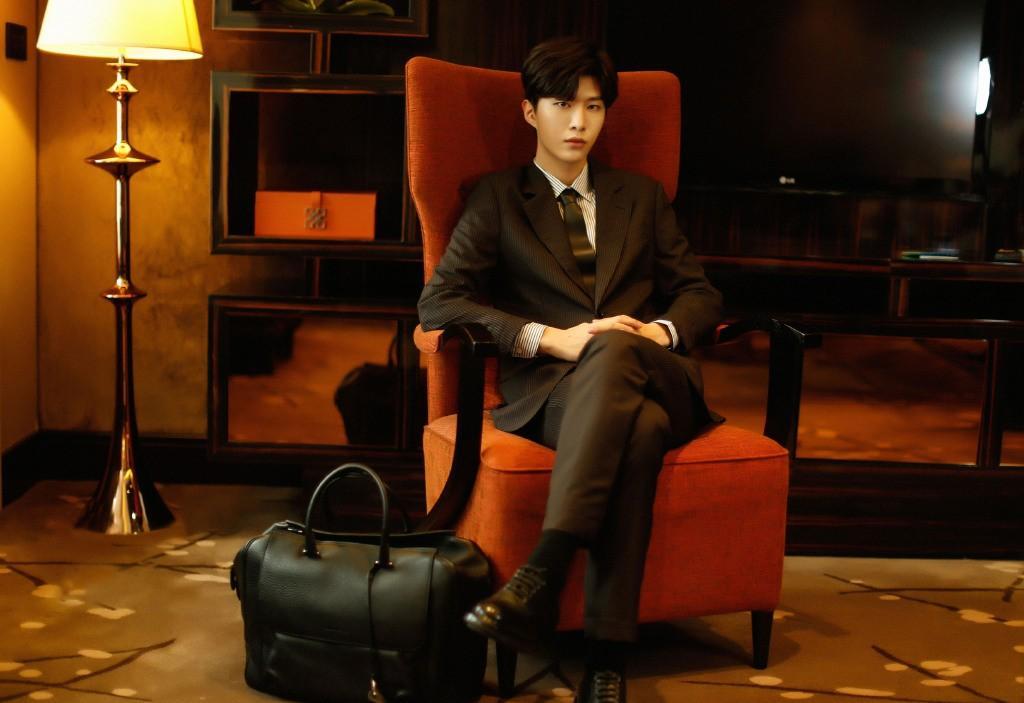 范丞丞身穿白色的条纹衬衫搭配上一件黑色的西装,整个人看起来冷峻霸气,一看就是职场上的霸道总裁,非常干练帅气,潇洒无比。