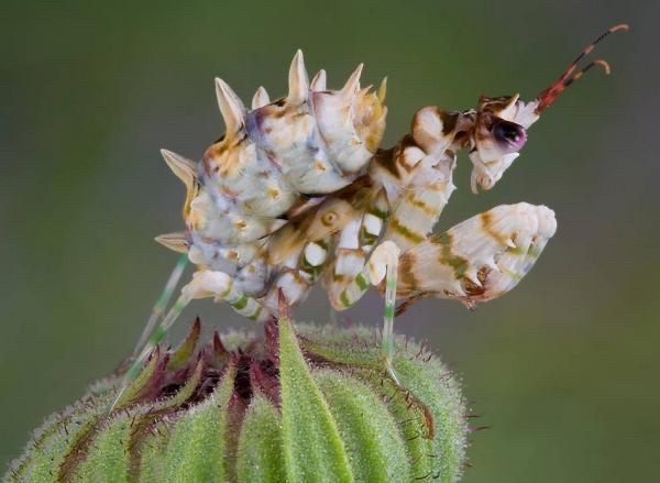 刺花螳螂,产于非洲东部至南部诸国。它们的外型在螳螂中也是独树一帜,因为全身布满棘刺而得名。另外有一种产于印度的印度花螳螂在外型上与刺花螳螂很近似,也是比较受欢迎的种类。