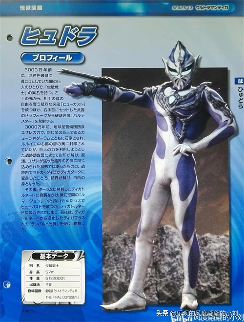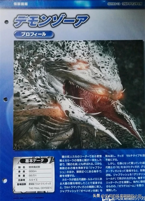 3000万年前的超古代时期和黑暗迪迦、爱憎战士卡蜜拉、俊敏战士希特拉一起毁灭了超古代文明,打倒了许多超古代战士的暗之巨人。