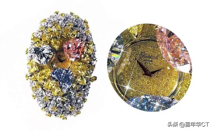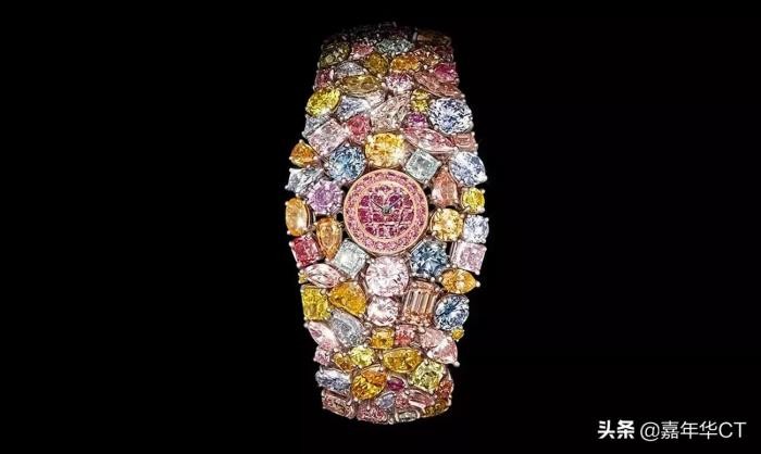 它是蓝色、黄色、粉色和绿色等颜色和形状的和谐融合,与心形、翠绿色、梨形、卵形和圆形相配。这是金钱能买到的最好、最贵的手表!