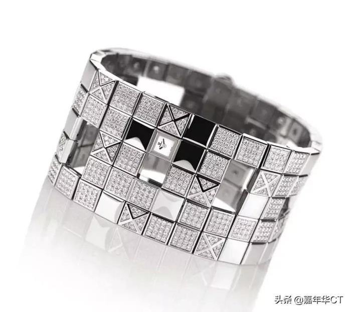 是有史以来最昂贵的时计之一,它由坚固的表带组成,该表带经过抛光和镶嵌钻石的链环。小巧的手动上链发条位于白金和钻石手链上。时钟的表面覆盖有蓝宝石玻璃,拥有576颗钻石和11颗on玛瑙宝石。