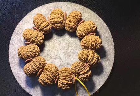其次、就是天气对金刚的影响。需要特别说明的就是北方的天气,举例说明:九十月份树上新下树的新籽,从山南地区靠近亚热带的尼泊尔带到北方,一定不要特意的靠近温度过高的地方,比如暖气片,比如风口,比如马上贴身佩戴,一句话不要靠近温度高得地方,有耐心的话就在塑料袋里封起来,来年春天再开始盘玩,等不及的话,上手盘完就迅速用袋封起来,盘个三五天封起一周左右,循环往复两三个月即可。