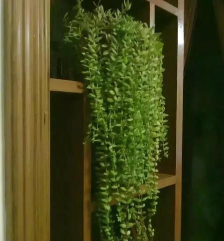 垂盆草,是景天科景天属多年生的一种草本多肉植物。垂盆草的叶子呈倒披针形或是长圆形,这种植物会在每年5–7月份间开出黄色的小花,叶片常年葱绿青翠看上去很是养眼,置于花盆中垂吊养护,其外观形状的观赏性很高。同时,垂盆草用于家居里养护还有净化空气的作用。