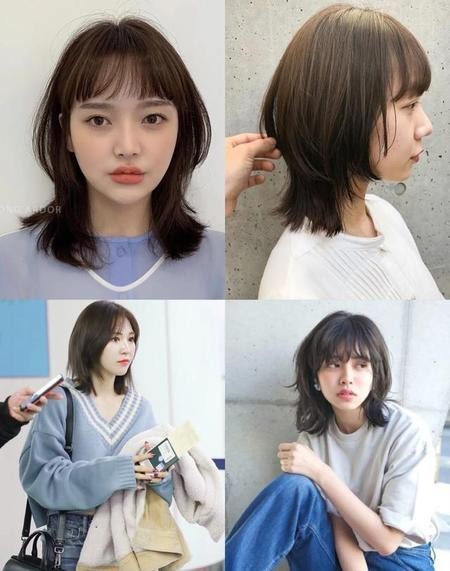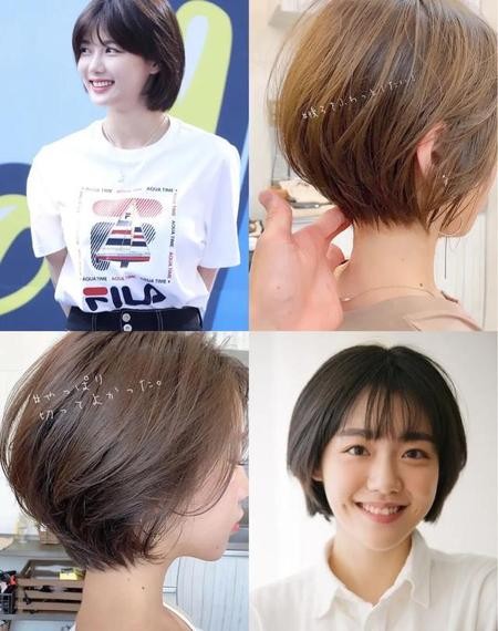 日系的短发就超级适合,有种软妹子的赶脚。如果要剪刘海,就要注意刘海的曲线,应该是自然的往后走,而不是笔直的朝下。这种曲线能极好的修饰脸型,增加女性的柔美