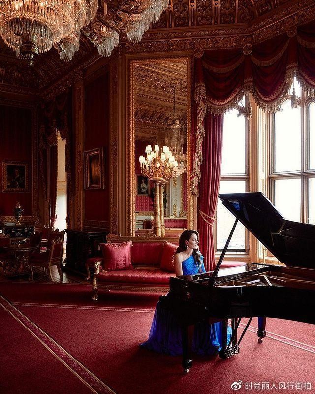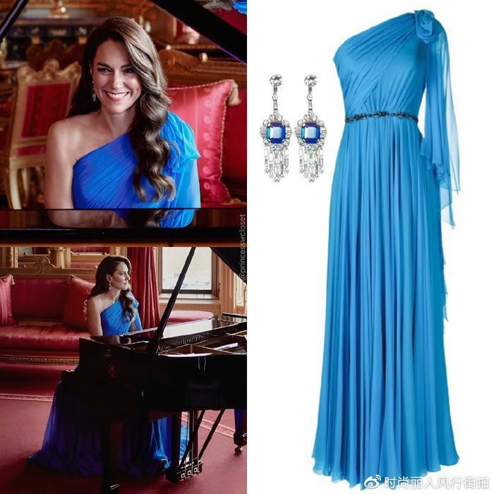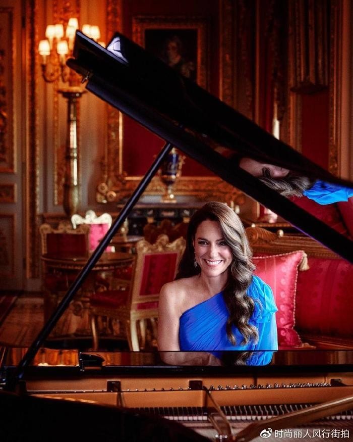 凯特趁热打铁继续登热榜!穿蓝裙亮相弹钢琴,优雅气质梅根赶不上