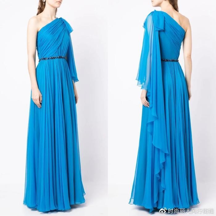 凯特虽然多次穿旧衣服出席活动,不过这条蓝裙还是首次穿,来自于Jenny Packham的褶皱雪纺长裙,折合人民币要2万5左右,斜肩的设计让凯特纤细的身材完美展现,而肩膀处的自然垂落的蝴蝶结设计,更是少女感十足。