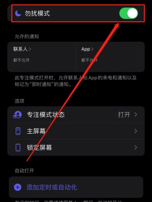 打开“勿扰模式”后的滑动开关即可。