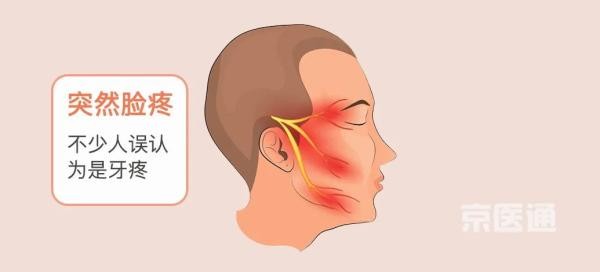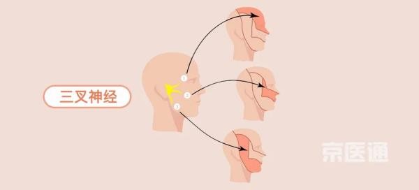 而三叉神经痛就指由于小血管压迫了神经,导致三叉神经支配的区域发生短暂的,反复发作的剧痛,简单讲就是:突然脸疼