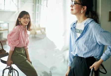 它们看起来有点泛白,并不像大红色、打蓝色那样的鲜艳夺目,它们有一种年轻的甜美感,就算是条纹衬衫,这种年轻印象和干净、轻盈的印象都不能够被抹杀。