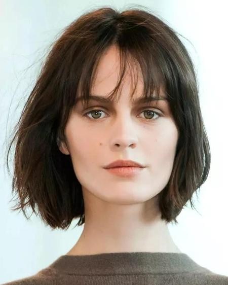 上面说的bob头,适合轻薄的刘海儿,其实也是弱化脸部的轮廓。