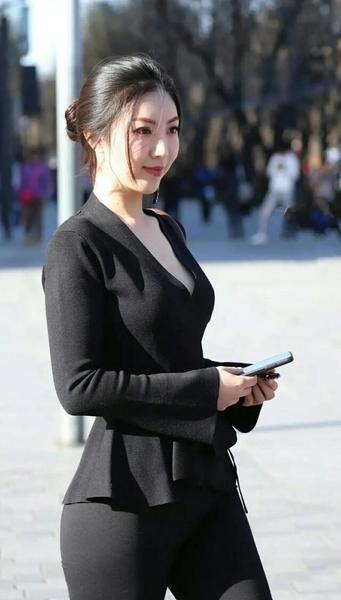 这位美女在网上曝光率是非常高的,看起来身材比较舒展挺拔,凹凸有致,气质也好,本来身材就不错,腰是腰腚是腚的,再穿一身黑,上面配一紧身,显得身材更完美了,本来皮肤就白,显得更白了,然后头发盘起,露出长长的脖子,显得端庄优雅,整个看起来非常搭配,非常协调。