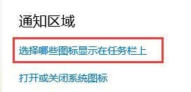 3、然后在右侧的通知区域下点击“选择哪些图标显示在特派团董事会上”。