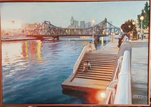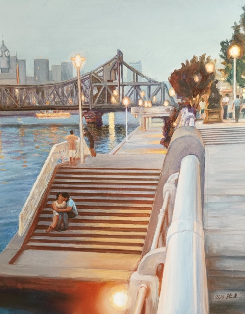 《解放桥的黄昏》丙烯画 布面油画103CmX75Cm 2O15年
