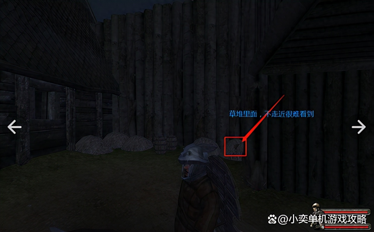 进城后,内城门前左拐,直行到底,右侧有几剁草堆,箱子在草堆间