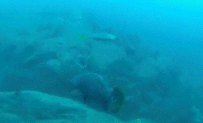 石斑鱼的捕食行为也很有特色。石斑鱼不会在广阔的水域中追逐猎物,而是等到鱼类、章鱼、螃蟹、龙虾等猎物靠近之后再突然袭击,部分捕猎场景如下图所示: