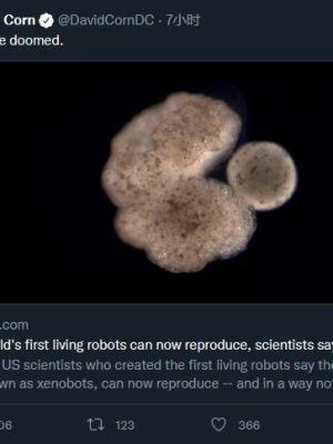 他称目前世界人生面临的新冠疫情,以及环境问题,异形机器人都有能力解决。“我们提出解决方案的速度至关重要。如果我们可以从异形机器人中吸取经验,继续开发技术,活体机器人生孩子,那么未来我们可以利用人工智能创造新的生物工具,这将非常有用但也需要很长的时间......全球比如利用生物机器人从水中提取微塑料或制造新药物。”