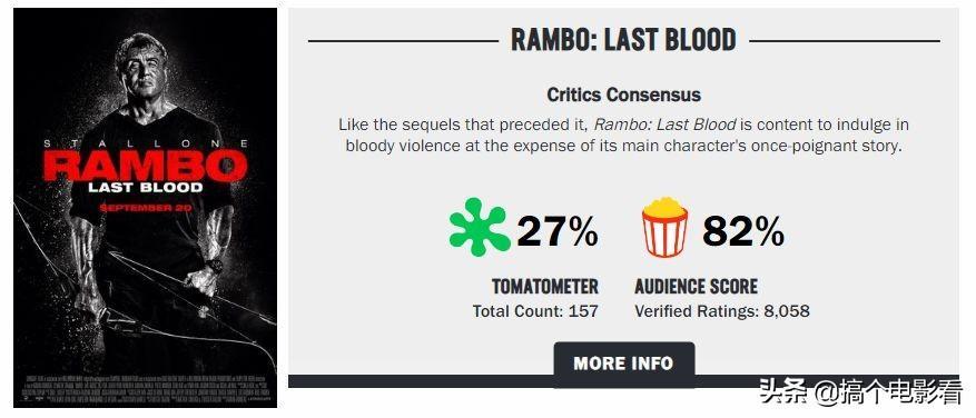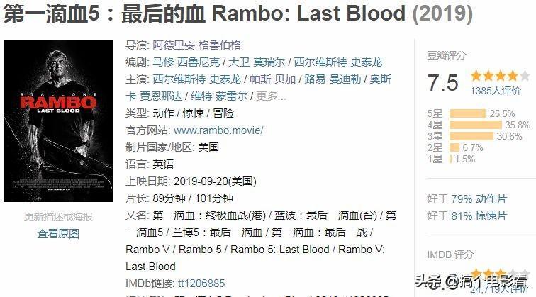 时隔37年后的2019,此系列终结篇《第一滴血5》强势来袭。垂暮之年的兰博重新燃起了浓浓战意,73岁的史泰龙打斗玩成了放飞自我。