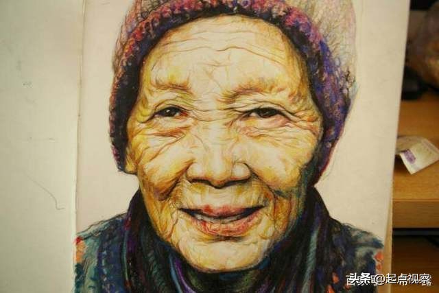 把五官用肉色彩铅交待一下,把立体感画出来。然后就是画周围的皮肤,皱纹。如果是画年轻人皮肤光滑的就着重画五官。