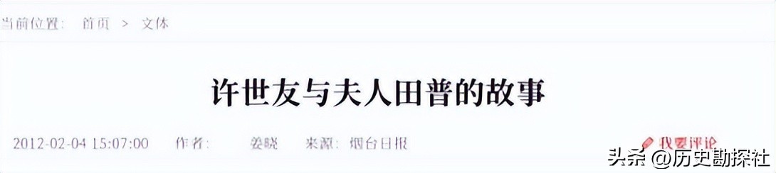烟台日报——许世友与夫人田普的故事2012-02-04