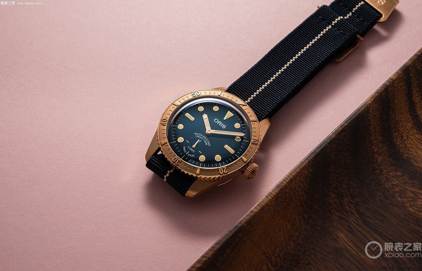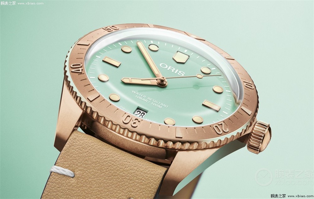 腕表流线型表身、纤细的潜水表圈、梯形日历窗口、标致性的蓝宝石“泡泡镜”等复古元素皆是沿袭了65复刻版潜水系列腕表。新款腕表内部搭载一枚豪利时Oris 733自动上链机芯,动力储存38小时,防水可达100米。腕表可选择配青铜表链,也可选择替换成皮带,皮带款售价16,500元,链带款售价18,800元。