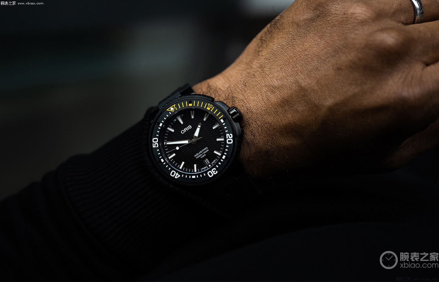 虽然这款腕表整体来看性价比颇高,但它49.5毫米的大尺寸表径却让很多人望而却步。不过这款腕表整体设计类似“罐头”,这样的造型或多或少在视觉上会显小一些,并且表壳采用钛合金材质打造,通体覆盖了黝黑的DLC镀层,材质较为轻盈,佩戴起来也不会过于厚重,但细手腕的表友还是要谨慎考虑。